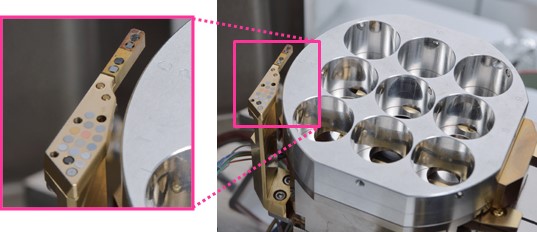 Portamuestras, cámara del portamuestras y espectrómetro. Cameca, EPMA-UGR.