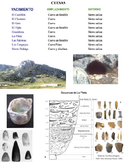 AFONSO MARRERO, J. A. (1993): Aspectos técnicos de la producción lítica de la Prehistoria Reciente de la Alta Andalucía y el SE. Tesis doctoral. Universidad de Granada. AGUAYO, P. Y CARRILERO, M. (1987): Prospección superficial de la Depresión de ronda (Málaga). 1ª fase: zona Noroeste, 1985. Anuario Arqueológico de Andalucía/1987, II. Consejería de Cultura. Junta de Andalucía, pp. 294-304. AGUAYO, P., CARRILERO, M. Y LOBATO, R. (1988): Los orígenes de Ronda. La secuencia cultural según las primeras excavaciones. Estudios de Ronda y su serranía, 1, pp. 7-26. AGUAYO, P., MORENO, F. Y TERROBA, J. (1990): Prospección superficial de la Depresión de Ronda. 2ª fase: zona Noreste, 1987. Anuario Arqueológico de Andalucía/1987, III. Consejería de Cultura. Junta de Andalucía, pp. 513-515. AGUAYO, P., MORENO, F., GARRIDO, O. Y PADIAL, B. (1990): Prospección superficial de la Depresión de Ronda. 3ª fase: zona Sur, 1990. Anuario Arqueológico de Andalucía/1987, II. Consejería de Cultura. Junta de Andalucía, pp. 62-65. AGUAYO, P., CARRILERO, M., GARRIDO, O., MORENO, F. Y PADIAL, B. (2004): La transición entre los cazadores- recolectores y las primeras sociedades campesinas en la Depresión de Ronda. Sociedades recolectoras y primeros productores. Actas de las Jornadas Temáticas Andaluzas de Arqueología, 2004. Consejería de Cultura. Junta de Andalucía, pp. 91-108. CORTÉS SÁNCHEZ, M. (2002): El Paleolítico Superior Final en el sur de la Península Ibérica: los yacimientos de la provincia de Málaga. MAINAKE XXIV, pp. 279-300. CORTÉS SÁNCHEZ, M. Y SIMÓN VALLEJO, M. D. (2007): La Pileta (Benaoján, Málaga) cien años después. Aportaciones al conocimiento de su secuencia arqueológica. SAGUNTUM 39, pp: 45-63. GARCÍA ALFONSO, E., MARTÍNEZ ENAMORADO, V. Y MORGADO RODRÍGUEZ, A. (1995): El Bajo Guadalteba (Málaga): espacio y poblamiento. Una aproximación arqueológica a Teba y su entorno. Excmo. Ayuntamiento de Teba y Diputación Provincial de Málaga. GUERRERO MISA, L. J. (1990): Carta arqueológica de Benaocaz (Cádiz): inicio a la sistematización arqueológica de la serranía gaditana. Anuario Arqueológico de Andalucía, 1987, II. Consejería de Cultura. Junta de Andalucía, pp. 354-366. HERNANDO GONZALO, A. (1999): Los primeros agricultores de la Península Ibérica. MÁRQUEZ ROMERO, J. E. (2000): Territorio y cambio durante el III milenio a. C.: propuestas para pensar el tránsito del Calcolítico a la Edad del Bronce. Baética. Estudios de Arte, Geografía e Historia 22, pp: 203-230. MARTÍN RUÍZ, J. A. Y PÉREZ-MALUMBRES LANDA, A. (2002): Historia de la provincia de Málaga. Desde sus orígenes a la conquista romana. Diputación de Málaga. MARTÍNEZ, G. Y AGUAYO, P. (1984): El Duende (Ronda), yacimiento epipaleolítico al aire libre. Cuadernos de Prehistoria de la Universidad de Granada, 9, pp. 9-37. MORGADO RODRÍGUEZ, A. Y MARTÍNEZ FERNÁNDEZ, G. (2003): Desarrollo local y diversificación regional del Neolítico de las Cordilleras Béticas: la comarca del Guadalteba (Málaga). III Congreso del Neolítico en la Península Ibérica. (P. Arias Cabal, R. Ontañón Peredo y C. García- Moncó Piñeiro, Eds.), Santander, 2003, pp. 1045-1055. NOCETE CALVO, F. (Coord.) (2004): ODIEL. Proyecto de investigación arqueológica para el análisis de la desigualdad social en el Suroeste de la Península Ibérica. Arqueología. Monografías 19. Consejería de Cultura. Junta de Andalucía. ORIHUELA, A. (1999): Historia de la Prehistoria: el suroeste de la Península Ibérica. Diputación de Huelva. RAMOS, J., MARTÍN, F., ESPEJO, M. M., CANTALEJO, P. Y RECIO, A. (1995): El poblamiento humano prehistórico del V al II milenio a.n.e. en la encrucijada de los ríos Turón, Guadalteba y Guadalhorce. El proceso de tribalzación. Geología y Arqueología prehistórica de Ardales. Ayuntamiento de Ardales (Málaga). Grupo Andaluz del Cuaternario (A.E.Q.U.A.), pp. 125-148. RECIO, A., CANTALEJO, P., MOLINA, J. A. Y BECERRA, M. (2001): Avance a las prospecciones arqueológicas en Benaoján. Arte esquemático en Cueva Bermeja. MAINAKE XXIII, pp. 185-196. ROMÁN DÍAZ, M. P. Y MARTÍNEZ PADILLA, C. (1998): Aproximación al estudio de las transformaciones históricas en las sociedades del VI al III Mil. a.C. en el Sureste peninsular. Trabajos de Prehistoria 55: 2, pp. 35-54. VICENT GARCÍA, J. M. (1991): El Neolítico. Transformaciones sociales y económicas. Boletín de Antropología Americana 24, pp. 31-62.