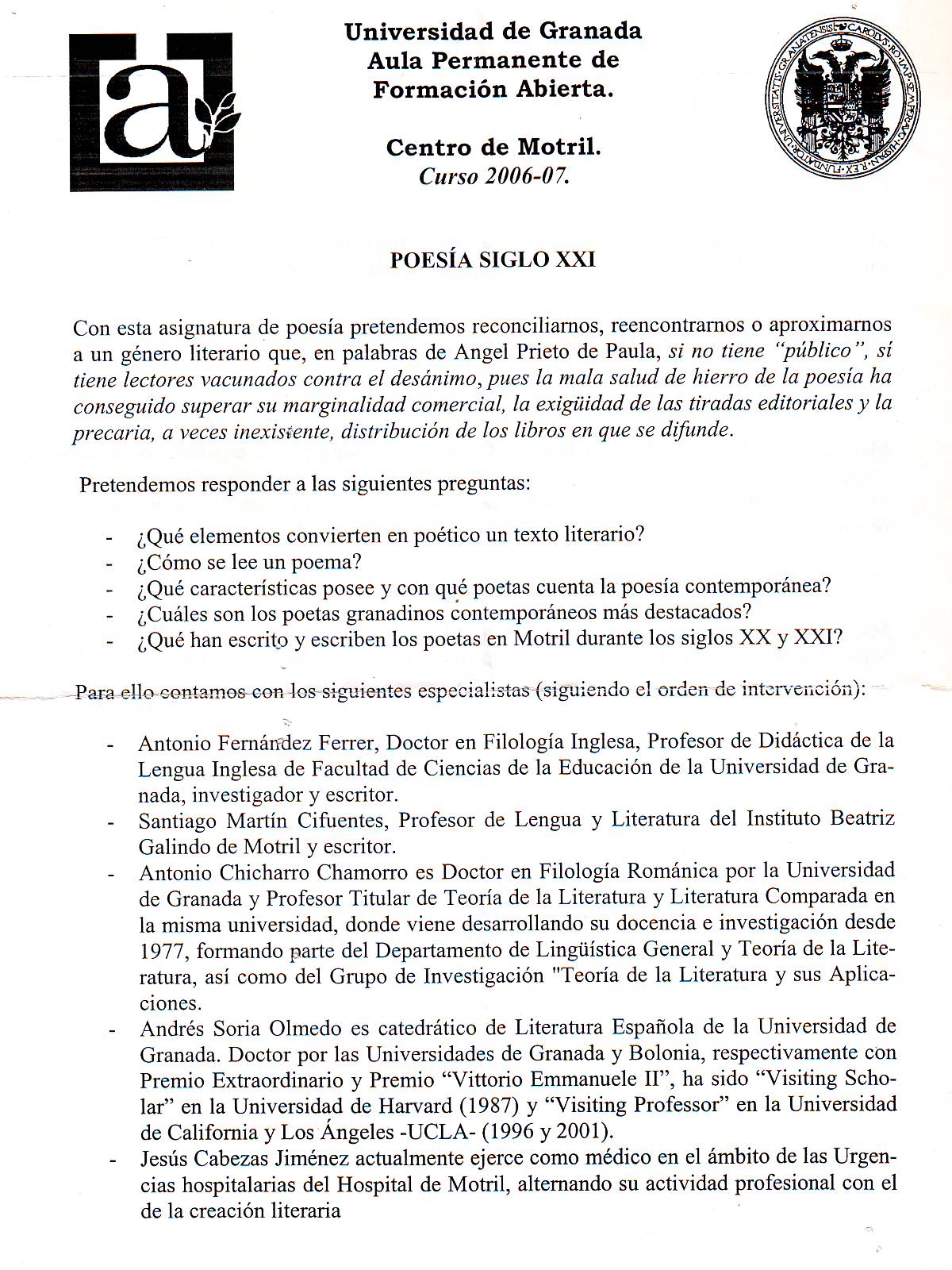 - Curso "Aplicación didáctica del texto poético en lengua inglesa". Centro del Profesorado. Almería, 2000.