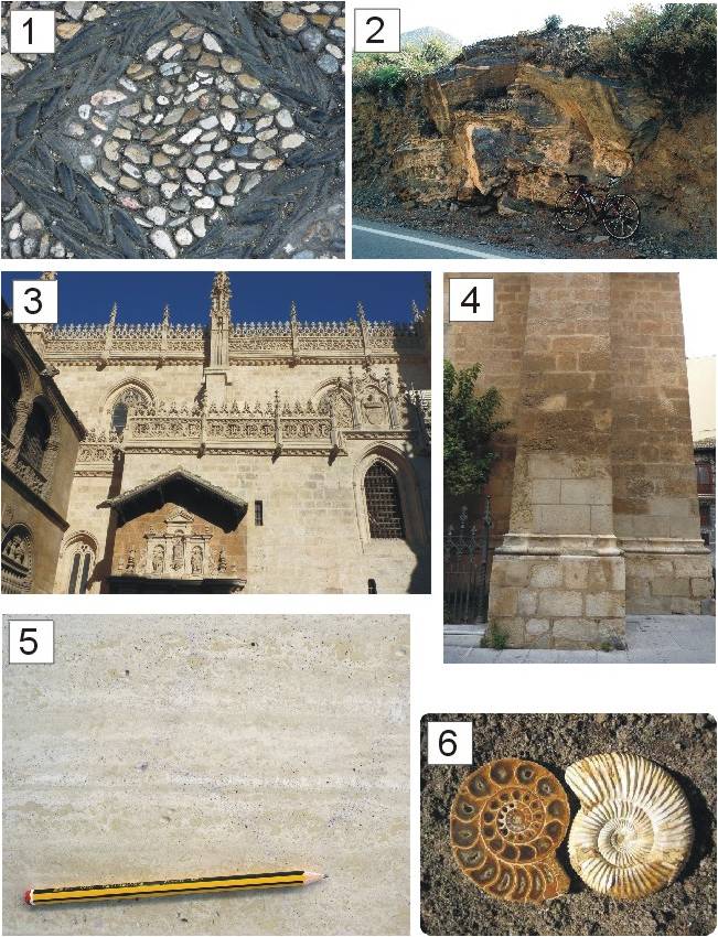Macia) Empedrados (mármol y esquistos) - Capilla Real Calcarenitas Sta Pudia –Escúzar, Mioceno-Tortoniense 10 Ma -