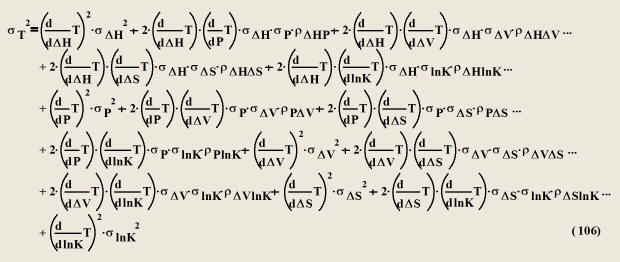 errores en los incrementos de las propiedades termodinámicas de reacción