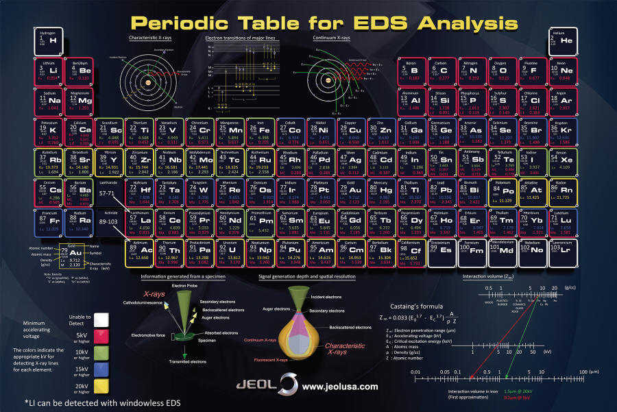 Tabla periódica para análisis EDS (energía) (por JEOL). Pique en la