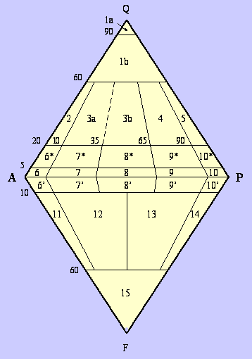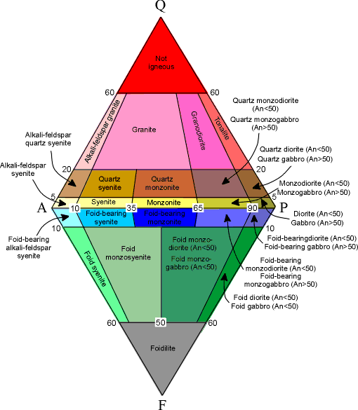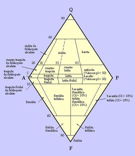 A, P Y F comprende los minerales félsicos, (de "fel"