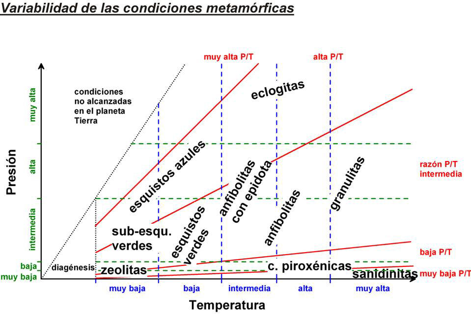 condiciones metamórficas o grado metamórfico.