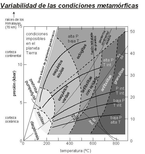 condiciones metamórficas de presión y temperatura