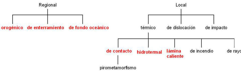 Los tipos de metamorfismo más