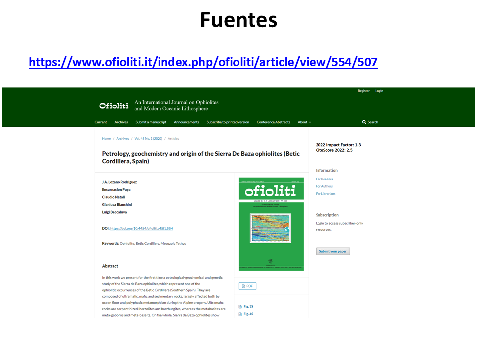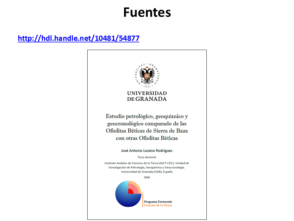 2018. José Antonio Lozano Rodríguez. Estudio petrológico geoquímico y geocronológico comparado de las ofiolitas de Sierra de Baza con otras ofiolitas Béticas.