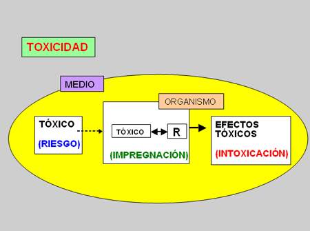 La presencia de un tóxico en el medio (agua que bebemos, aire que respiramos, etc.) sólo indica riesgo, es decir, probabilidad de que ocurran efectos adversos. Cuando penetra en el organismo e interactúa con sus dianas o receptores dando lugar a una respuesta biológica entonces hablamos de impregnación. Sin embargo, no se considera intoxicación propiamente dicha hasta que no aparecen síntomas o signos tóxicos; es decir, cuando las alteraciones bioquímicas han alcanzado tal intensidad que se manifiestan clínicamente. Obviamente, las medidas preventivas de la intoxicación surtirán más efecto si se aplican durante la fase de riesgo o de impregnación.