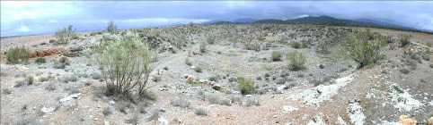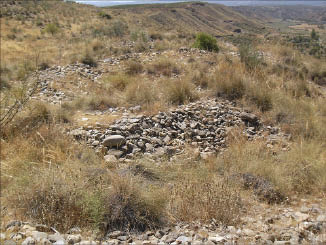 De entre ellos destaca uno situado a la derecha del Barranco del Cortijo de la Salida de las Vacas, bien marcado y con presencia de otras estructuras mineras, tales como una gran concentración de cantos rodados y posibles restos de conducciones hidráulicas. En general, todos los pequeños montículos que presentan acumulaciones de “murias” son cerros testigos incipientes, dado que esta explotación no está desarrollada más que en una fase inicial.