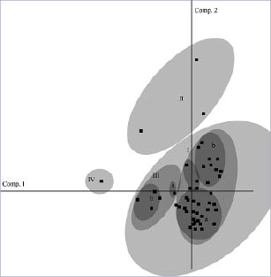 ESQUIVEL, J.A., CONTRERAS, F. (1984): Una experiencia arqueológica con microordenadores. Análisis de componentes principales y clusterización: distancia euclídea y de Mahalanobis, Actas del XIV Congreso Nacional de Estadística, Investigación Operativa e Informática, Granada, 1984, pp. 113-146.