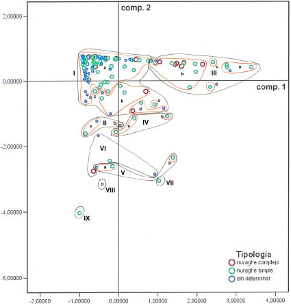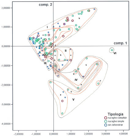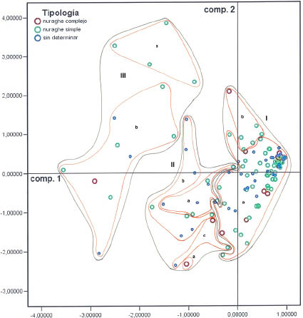 Los nuraghi pertenecientes al grupo II, comparten con el grupo VI, la búsqueda de emplazamientos estratégicos en el entorno inmediato: de hecho, surgen siempre en territorios altamente productivos, a breve distancia de importantes cursos de agua. El grupo III se separa fuertemente de los demás, indicando que en él se enfatiza el control del entorno inmediato y no el control global, aunque no se busquen emplazamientos de gran pendiente. No se trataría así de yacimientos de control amplio (torres) sino probablemente poblados o torres destinadas al control de elementos específicos.