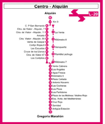 Laborable: 7:08 - 7:33 - 8:23 - 9:13 - 10:03