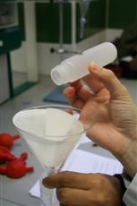 6. Filtrar el sobrenadante sobre una probeta de 200 ml. Verter el contenido en el vaso de precipitado y lavar la probeta con 5 ml de agua destilada.