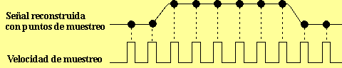 En el otro extremo de la escala, también se necesita velocidades de muestreo bajas para poder observar señales de variación lenta. Generalmente la velocidad de muestreo cambia al actuar sobre el mando TIMEBASE para mantener constante el número de puntos que se almacenaran para representar la forma de onda.