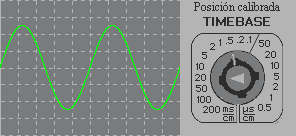 Se trata de un conmutador con un gran número de posiciones, cada una de las cuales, representa el factor de escala empleado por el sistema de barrido horizontal. Por ejemplo si el mando esta en la posición 1 msg/div significa que cada una de las divisiones horizontales de la pantalla (aproximadamente de un 1 cm.) representan 1 milisegundo. Las divisiones más pequeñas representaran una quinta parte de este valor, o sea, 200 µsg.