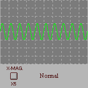 Este control consta de un pequeño conmutador en forma de botón que permite amplificar la señal en horizontal por un factor constante (normalmente x5 ó x10). Se utiliza para visualizar señales de muy alta frecuencia (cuando el conmutador TIMEBASE no permite hacerlo). Hay que tenerle en cuenta a la hora de realizar medidas cuantitativas (habrá que dividir la medida realizada en pantalla por el factor indicado).