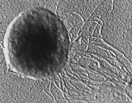 Methanococcus jannischii, se aisló por vez primera en una muestra tomada en una fumarola blanca a profundidades de 2600 m en las cadenas del Pacífico oriental. puede cultivarse en medios con H2 y CO2 como fuentes de energía y carbono como alimento, a temperaturas entre los 50 y los 86 oC. |