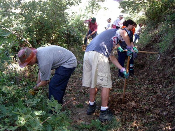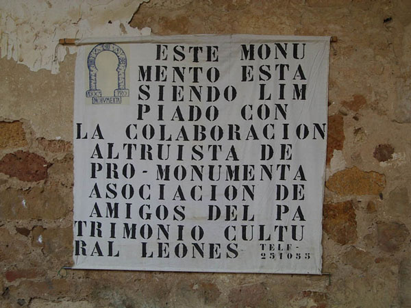 Hacendera de limpieza en el Monasterio de Santa María de Sandoval. Este monumento ha sido en el que más tiempo han invertido. Sus trabajos de limpieza empezaron el 24 de abril de 1993, y en sus repetidas acciones han conseguido limpiar el contorno del monumento, limpiar sus salas sobre todo el claustro que estaba oculto bajo años de maleza; y rescatar el coro. Fue su primera acción y se convirtió en el emblema de esta asociación