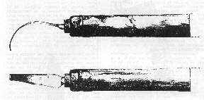 En cuanto a las herramientas (véase nódulo, cuchilla y legra), todas las utilizadas por Gregorio Venteo, el más antiguo cucharero, que las había guardado todos estos años con especial cariño, ahora forman parte de una colección (11) que posee don Andrés Gea, con el fin de que algún día sean expuestas en un lugar expresamente creado para las artesanías y antigüedades de Castril. Las familias de otros antiguos cuchareros no residen en el pueblo, al menos de una forma constante, y por tanto la localización de otro juego de herramientas ha sido imposible. Una «cuchilla» (12) la hemos visto decorando una casa del pueblo, adquirida expresamente para ello y sobrevalorada como para ser asequible mediante compra. Las piezas, por consiguiente, debían de ser documentadas gráficamente y en esta labor empleamos gran parte de nuestro tiempo. Las herramientas han sido reproducidas procurando reflejar en los dibujos su estado de deterioro actual (herrumbre, desgastes de uso e incluso mutilaciones como el caso del mango de la legra). En la realización de estos dibujos, en concreto al dibujar el detalle del sello que el herrero había impreso en la hoja metálica de la gran cuchilla, tuvimos una sorpresa agradable. En esa marca rezaba: «Miguel Muñoz, Castril». A nosotros no nos indicaba nada especial, pero sí a algunas de las personas que, interesadas en nuestro trabajo, nos pidieron ver los dibujos reparando en el detalle del fabricante e indicándonos con la mayor de las sorpresas que un hijo del tal Miguel Muñoz seguía trabajando en una fragua, quizás en la misma, y que para él sería una gran satisfacción saber que esas herramientas eran obra de su padre. Este acontecimiento anecdótico y casi sin importancia sirvió, sin embargo, para que este herrero nos ofreciera la fabricación, especialmente para el museo arqueológico de Granada, de un juego completo de herramientas, reproducción de los dibujos que había visto (13). Aun habiendo reunido suficiente material para tener una idea muy aproximada de lo que fue la fabricación de cucharas en Castril de la Peña, nos parece obligado un nuevo contacto con la gente y las artesanías perdidas del pueblo. Campo de trabajo hay mucho; existe una rica relación de otras artesanías e industrias artesanos sobre las que se puede investigar para sacar a la luz datos de interés. Sobre las pequeras y todo el proceso de obtención del alquitrán a partir de las toconas de las raíces de los pinos, su traslado en pieles de cabra y su posterior comercialización, tendríamos un buen informante en la persona de José M. Sánchez Dengra. La obtención de aguardiente, con la consecución de las fórmulas de fabricación, su origen, su posible permanencia artesana o su desaparición como producto comercializado, es asimismo un estudio prometedor. Lo mismo cabe decir de la obtención del papel de estraza. Lugar aparte ocuparía un estudio de los desaparecidos martinetes, pues no conocemos a ningún informador directo y los restos de su producción son objetos de cobre (calderos) de muy difícil consecución. No queremos