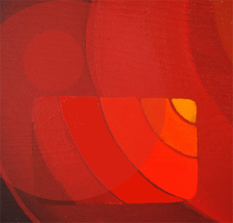 Esperaba todos los días el puntual canto del gallo, para pintarlo, pues éste al contrario del mosquito, su sonido es sincero, canta verdades. Espirales que se abren como ondas en el agua, círculos en rojo inglés, rojo carmín, bermellón y naranja. La música que emite el gallo es como el cante flamenco, cada vez que este animal canta, parece como si fuese su última vez, emite un lamento o un aviso, esperando la respuesta o el alivio de alguien o algo. Un grito de dolor que consuela y al mismo tiempo anima a continuar escuchándolo.