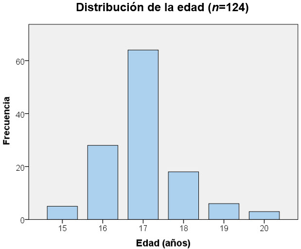 Conviene destacar la principal diferencia entre un diagrama de barras y un histograma. Como ya se ha indicado, en el primero, la anchura de la barra es irrelevante, es una cuestión de estética, en lugar de una barra se podría dibujar una línea. La idea es que las barras no se solapan, hay un “hueco” entre una barra y la siguiente, poniendo de manifiesto la falta de continuidad entre las categorías o los valores representados. En la Figura 4.7 no hay nadie con edades intermedias entre 15 y 16 años, por ejemplo. Sin embargo, en el histograma, el punto donde acaba un intervalo constituye el comienzo del siguiente, de manera que los rectángulos asignados a cada intervalo sí que se solapan, tal y como se pone de manifiesto en la Figura 4.8.