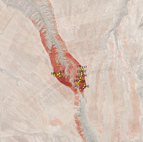 Fig. 1. Situación de las tumbas en el valle del río Gor (Spanedda et al. 2014: 108)