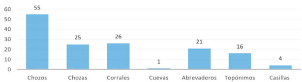 Fig. 5. Cuantificación de elementos relacionados con la ganadería en el norte del Valle Alto del Guadalbullón. Fuente: Elaboración propia.