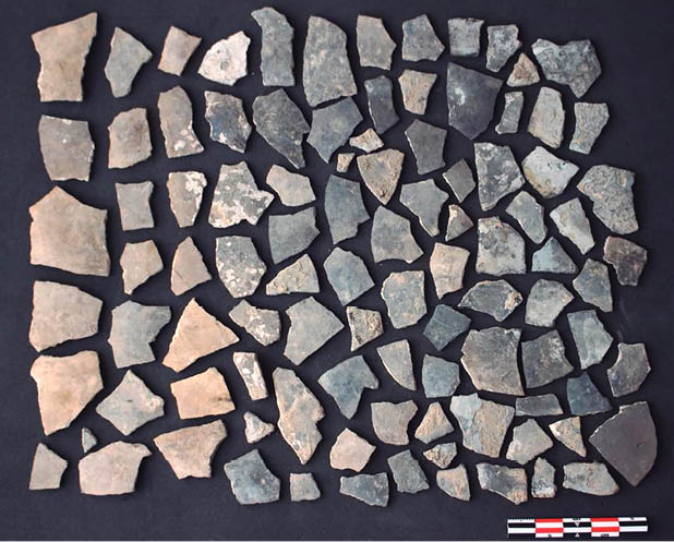 Fig. 4. Conjunto de fragmentos de cáscara de huevo con alto grado de incineración en Iliberri, Granada. Fuente: Barrachina y Adroher, 2018.