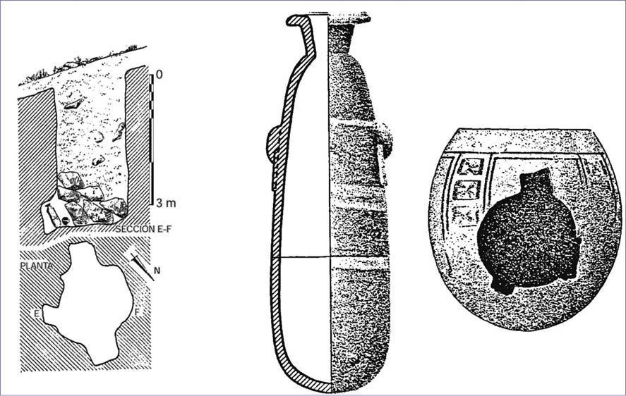 Fig. 5. Sepultura 18 de la necrópolis de La Joya (Huelva), hipogeo de incineración que cuenta con una cáscara de huevo en forma de vaso. Fuente: Garrido y Orta, 1978.