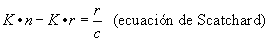 La determinación de la constante de afinidad K se realiza en experimentos de diálisis, que conducen a la determinación de la ecuación de Scatchard: