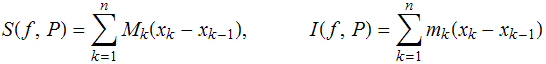 se llaman, respectivamente, suma superior y suma inferior de f para la partición P. Es para definir estas sumas para lo que se precisa que f esté acotada en [a,b]. Puesto que para todo