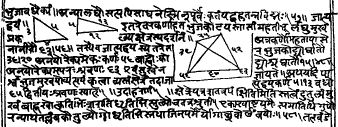 La tabla trigonométrica más antigua que se conoce figura en los Siddantas o sistemas astronómicos (hacia el año 290) durante el comienzo de la dinastía del rey hindú Gupta. En dicha tabla figuran los senos de los ángulos entre 0° y 90° distribuidos en 24 intervalos iguales de 3,75°. Para expresar la longitud del arco y la del seno en términos de la misma unidad, se tomaba como radio 3.438 unidades, la circunferencia correspondiente medía 360 x 60 = 21.600 unidades. Para el seno de 3,75 por ser muy pequeño confundían el seno con el arco, por tanto, se tenía que sen 3,75º = S1 = 60x3,75 = 225. Para los restantes ángulos se sustituía en la expresión Sn+1 = Sn + S1 - Rn/S1, donde Rn es la suma de los n primeros senos. Los resultados así obtenidos son muy próximos a los que podemos obtener hoy día con nuestras modernas calculadoras científicas. |