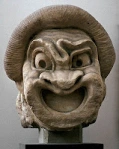 | Máscara de teatro de comedia griega. Bronce. Réplica |