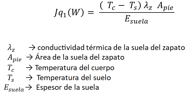 Cálculo del flujo de calor por conducción entre zapatos/suelo y entre la piel/ropa
