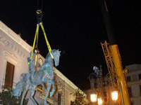 La escultura ecuestre colocada en la fachada del Ayuntamiento de Granada será desmontadaVuelve a resurgir la polémica sobre la instalación de una escultura ecuestre de Guillermo Pérez Villalta en la fachada del consistorio granadino, ya que el actual equipo de gobierno quiere retirarla para colocarla en un lugar donde sea más visible para los ciudadanos |