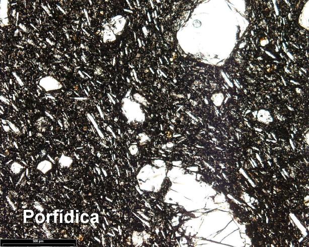 Porfídica: Contiene fenocristales. Indica dos fases de cristalización con velocidades distintas.