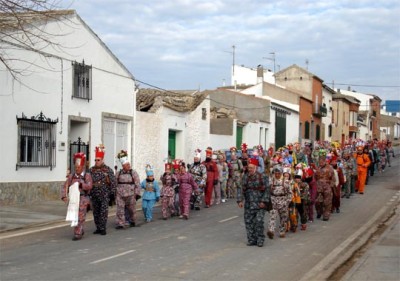 La Justicia contra los diablillos Un dignatario judicial granadino, a mediados de 1717, decide intervenir en contra de "los abusos introducidos en esta ciudad en la víspera del Corpus y su octava", cuando: "Concurriendo a un tiempo toda la gente común (...) hablan con demasiada indecorosa libertad. También se practica salir disfrazados así de gala como de ridículo unos que llaman Diablillos (y entreaparte mojarrillas) y con el disimulo de no ser conocidos ejecutan otras demostraciones de igual, o mayor, reparo, y necesarias de remedio, pues entrando licenciosamente en las casas (...) vengar enemistades y odios (...) He dispuesto no salgan Diablillos, sino es el día Víspera por la tarde, y la mañana de la Procesión, sin extraviarse de ella (...) que la plaza se ilumine, pero no entre en ella ningún hombre con montera ni rebozo, ni mujer tapada, que suelen ser hombres con este disfraz, [haya] nueve rondas en la plaza y bocacalles, y que con cada una salga un Ministro Eclesiástico para el reconocimiento y prisión de clérigos, que son los que más inquietan". Tales medidas de orden fueron confirmadas por la corte a los pocos meses (11). Las licencias a las que se entregaban estos personajes disfrazados son muy similares a las que, en diferentes períodos históricos, se acusaba de cometer a los enmascarados carnavalescos, apreciándose otra similitud entre ambos grupos festivos: a menudo son hombres con indumentarias femeninas. La vigilancia impuesta por las autoridades granadinas no debió resultar muy eficaz, ya que la actuación descontrolada de los diablillos se extendió a otras localidades, como atestigua otro documento procesal. En 1755, el corregidor de Alcalá la Real (Jaén) informa al Rey que en su villa ha desterrado "la diabólica costumbre de los diablillos", pero que en la víspera del Corpus "de noche salen mujeres y hombres con el motivo de ver el adorno de la Plaza con disfraces ajenos de sus calidades, mintiendo tal vez su sexo (...) siendo al mismo tiempo incentivo de citas que paran en obscenidades y ofensas a Dios". Ante su petición de mayor rigor legal, el Consejo Real escribe al presidente de la Chancillería de Granada, porque "según las noticias que tengo se experimentan también, y aún mayores (excesos) en esa ciudad con igual motivo". Se contesta a la corte: "Es cierto que cuando yo vine a esta ciudad hallé toleradas muchas especies que me disonaron, y entre ellas extrañé mucho el modo conque equivocaban la devoción, el celo y el culto debido al Sacramento en el día y octava de su Celebridad, con la libertad, el escándalo y la desenvoltura, lo cual se tenía por irremediable, y se condescendía y toleraba por la aprehensión de que podían resultar inquietudes". A pesar de ello, la Real Chancillería había intervenido el año anterior para combatir tales actos: "Desterráronse del todo las tapadas y embozados en que consistía la celebridad del paseo de aquella noche y del que resultaban tantos males; y casi del todo se quitaron las danzas de enmascarados que comúnmente llaman Diablícalos (12), los cuales promovían los alborotos del Pueblo, y con la libertad establecida de entrar con aquel disfraz en cualquier casa, daban motivo a muchos escándalos y desazones, y será lo mismo que en Alcalá la Real acostumbran como en otros pueblos de este reino. En quitar del todo esta especie de danza hallamos el Señor Arzobispo y yo una gran contradicción en la ciudad y sus comisarios, pareciéndoles que faltaba sin esto una gran parte de su lucimiento, y nos hemos contentado en reducir a reglas esta extravagancia", obligándoles a identificarse, no incluir mujeres, estar siempre juntos y acompañados por dos ministros de corte "y al que se le halláse solo disfrazado se le impondrían cuatro años de Presidio". A la vista de estas decisiones, el Consejo de S. M. Fernando VI (del que hacía poco se había cesado al reformista marqués de la Ensenada) aprobó tal política de control, ordenando a las autoridades que se publicase el bando según el cual "ningún hombre pueda salir aquella noche con disfraz ni embozo" y para su cumplimiento "imponiendo en las plazas o calles más públicas soldados y Ministros" (Legajo 321-4402-57). Con sus Reales ordenanzas (1768), Carlos III regula para todo el imperio la protección armada al Corpus. Es presumible que el 'estado de sitio' decretado contra los diablícalos granadinos conseguiría corregir los 'abusos', aunque el ataque decisivo tardaría una década, al aprobarse en 1777 la ley que prohibía entrar en las iglesias a "las danzas de mujeres, hombres y diablillos que acompañan la procesión del Corpus". Y para garantizar su cumplimiento, se encargó a la tropa militar que los expulsase, como reflejan sucesivos acuerdos municipales de Granada entre 1778 y 1783. Así, el ejército borbónico español conseguiría una de sus mayores proezas al erradicar a los desordenados diablillos del ritual festivo del Corpus. Y al mismo tiempo se incluyó al ejército como nuevo elemento ritual, cometido que sigue ocupando.