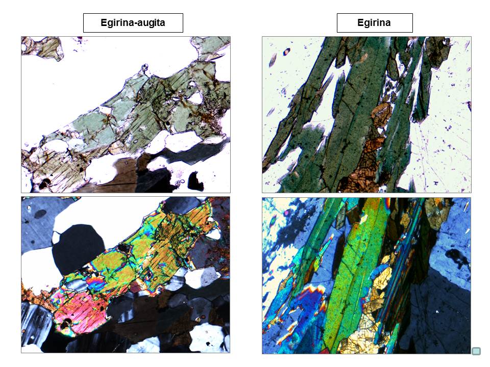 Aegirina-augita Aegirine-augite (Ca,Na)(Fe3+,Fe2+,Mg)Si2O6 Mon.