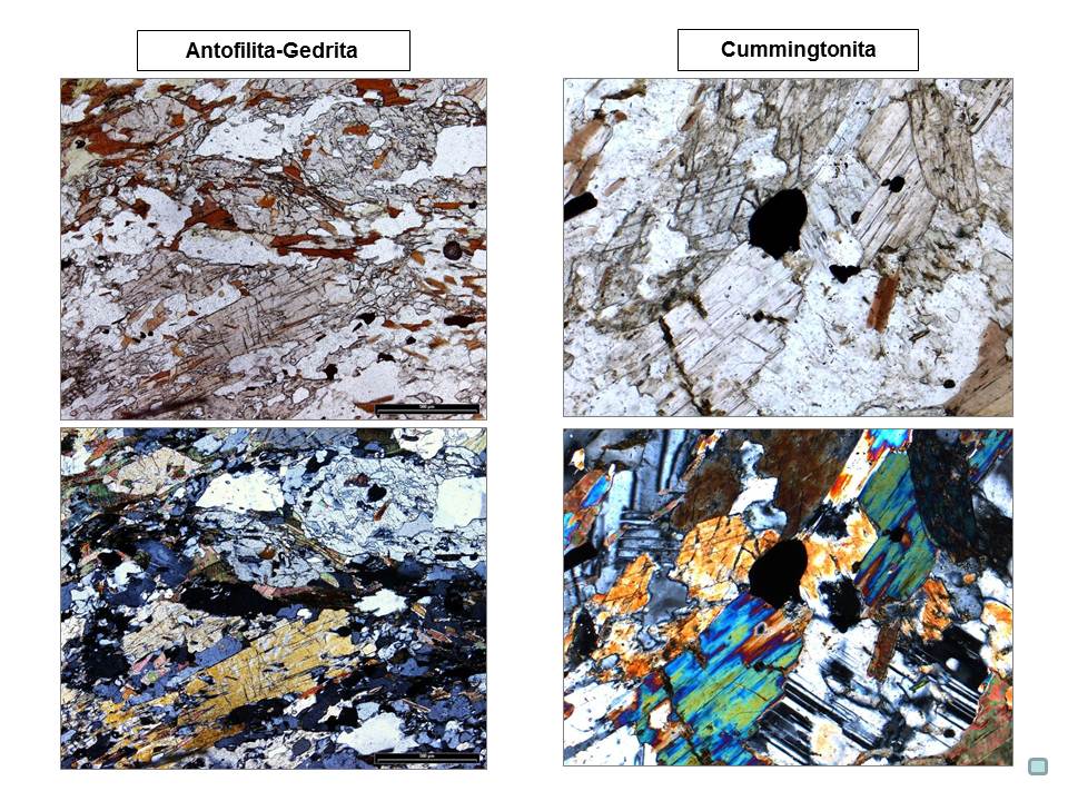 Antofilita-Gedrita Anthophyllite-Gedrite (Mg,Fe)2(Mg,Fe,Al)5(Si,Al)8O22(OH)2 Rómb.