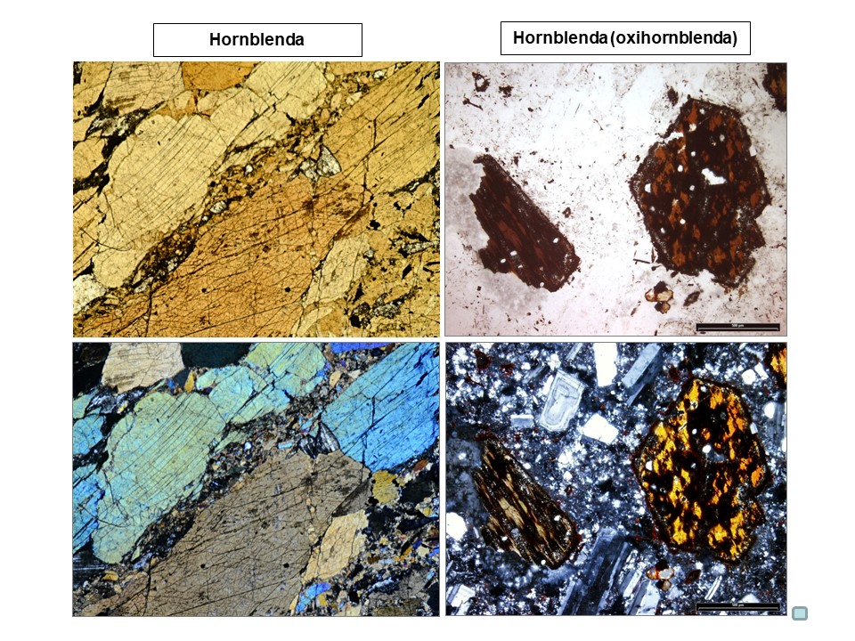 Hornblenda (F2) Hornblende (Na,K)0-1Ca2(Mg,Fe,Al)5(Si,Al)8O22(OH)2 Mon.![]()