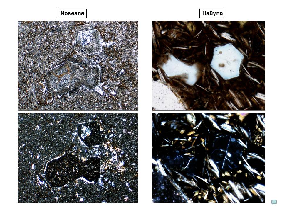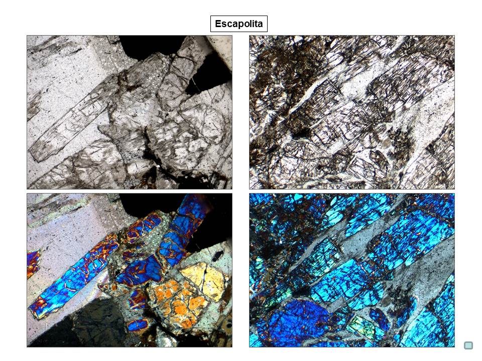 Haüyna Haüyne Na3Ca(Al3Si3)O12(SO4) Cúb.Escapolita Scapolite (Na,Ca)4(Si,Al)12O24(Cl,CO3,SO4) Tet.