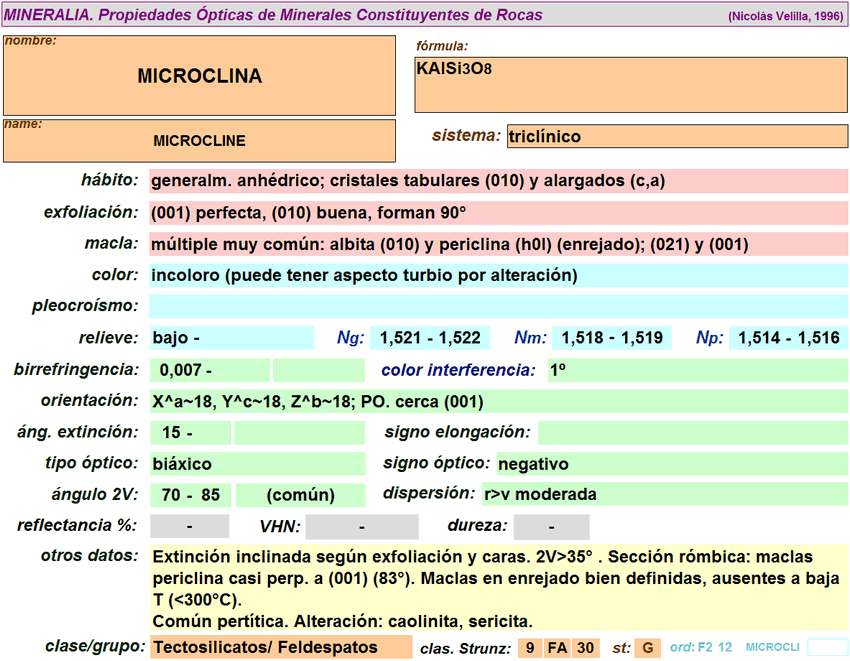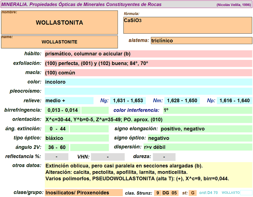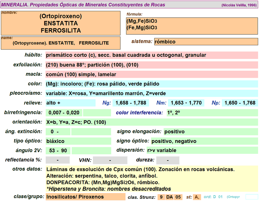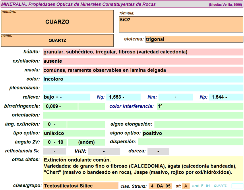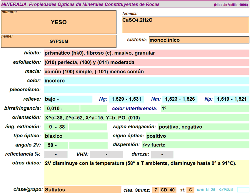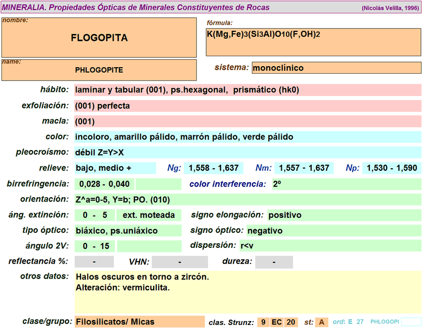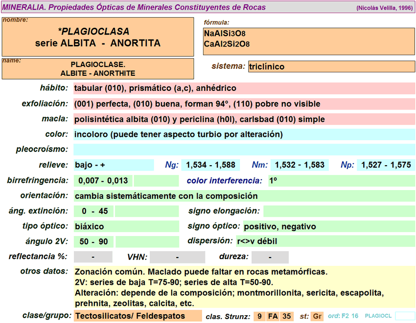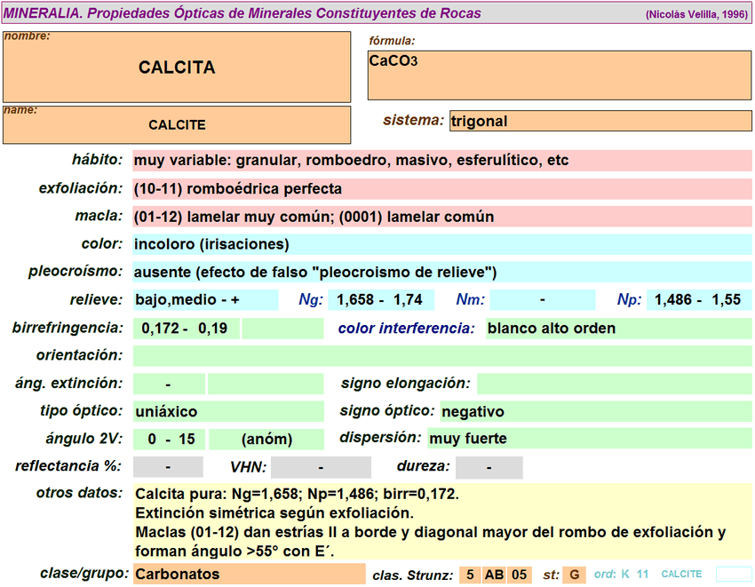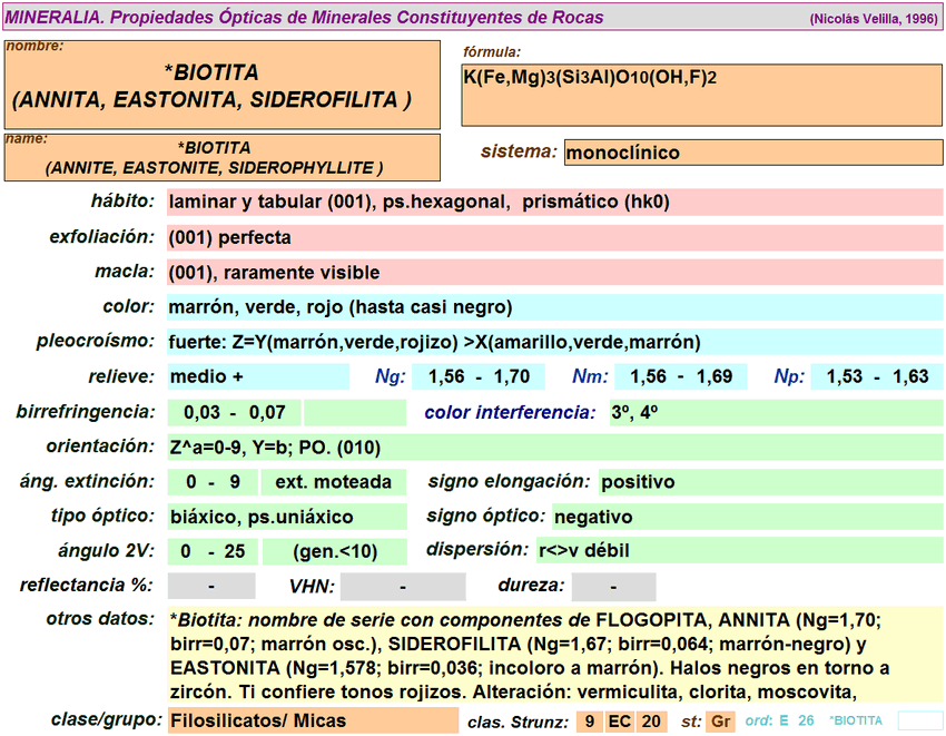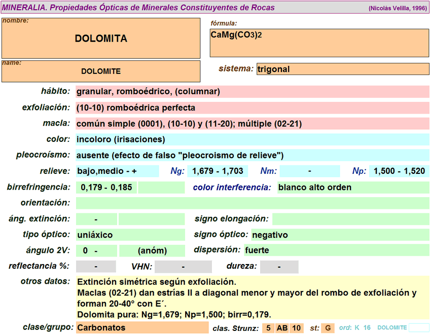 VELILLA, N. (1995). Mineralia: Una base de datos de las propiedades ópticas de los minerales que forman rocas. Bol. Soc. Española Mineralogía 18:201-205.