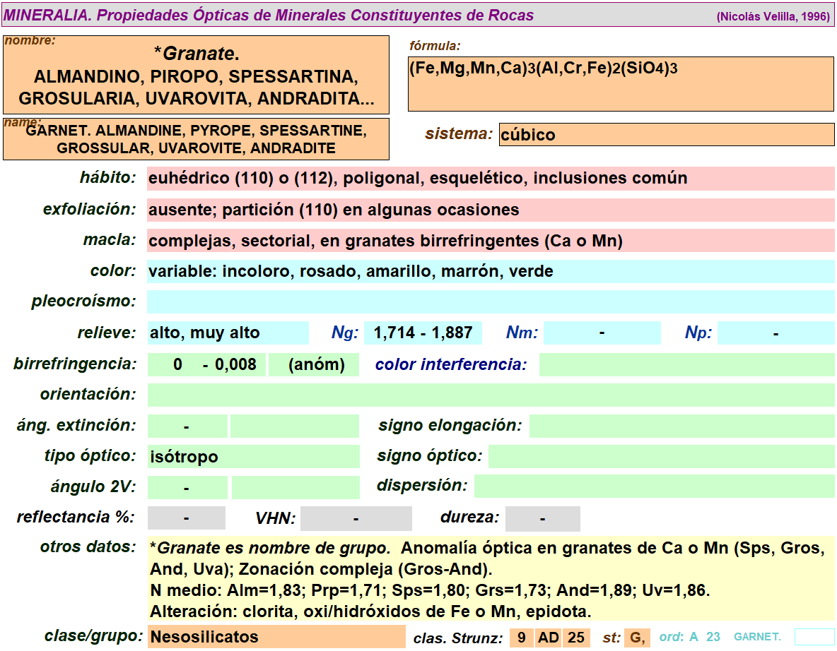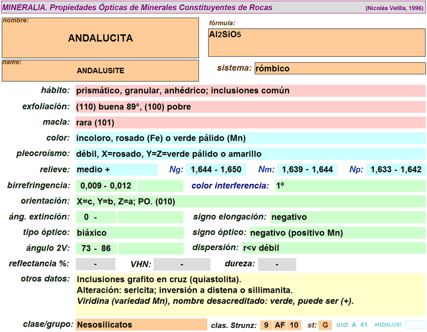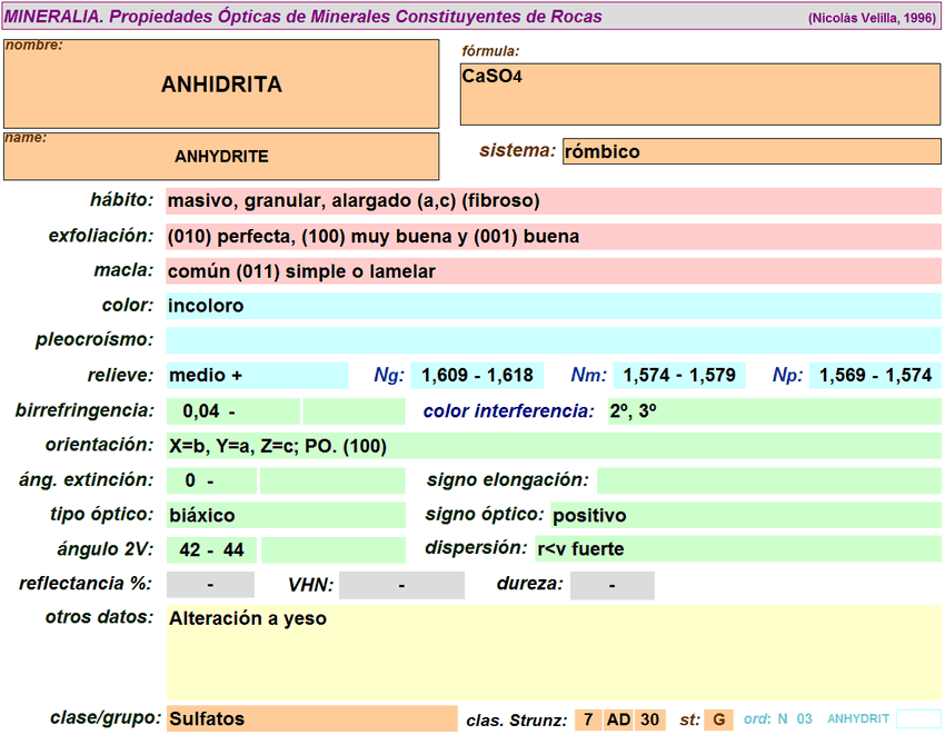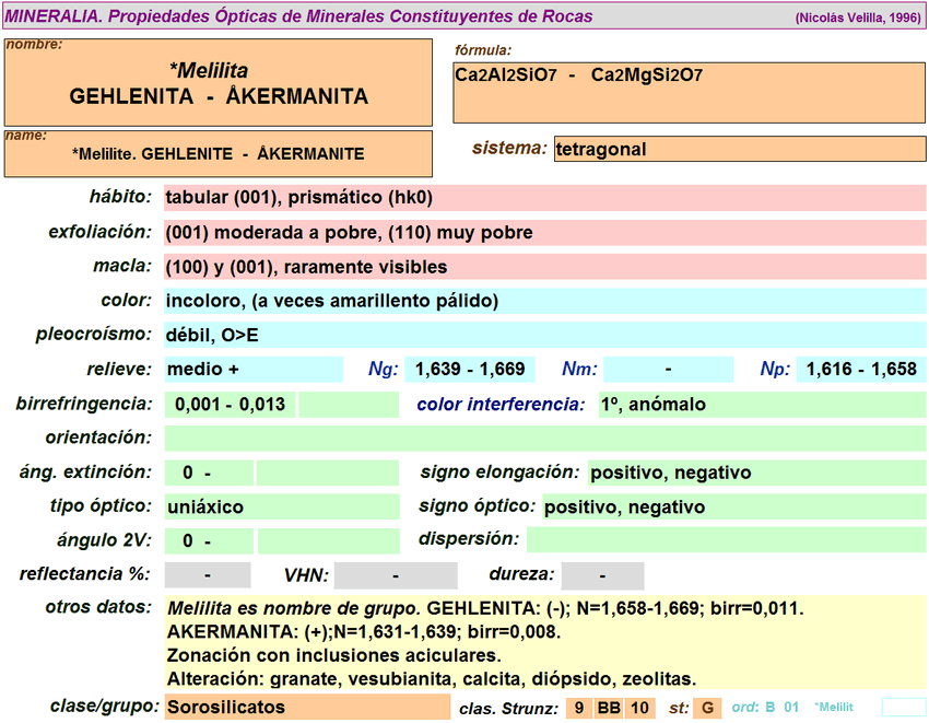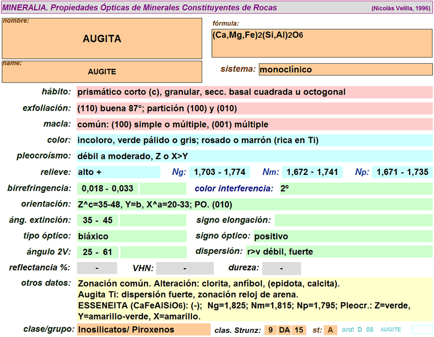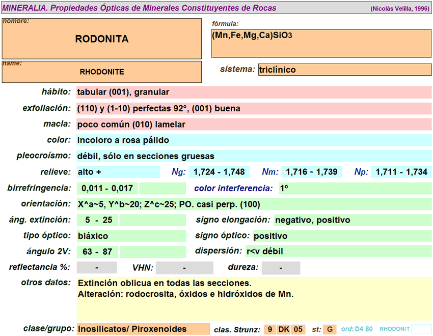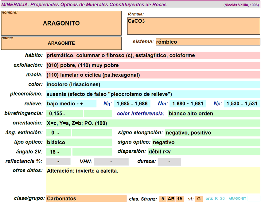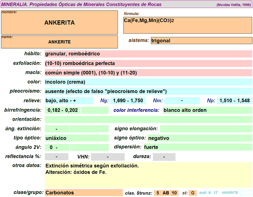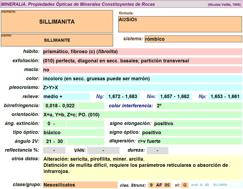 VELILLA, N. (1995). Mineralia: Una base de datos de las propiedades ópticas de los minerales que forman rocas. Bol. Soc. Española Mineralogía 18:201-205.