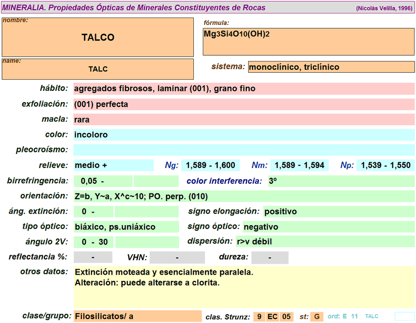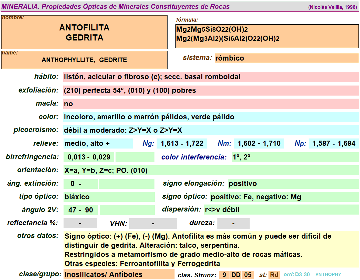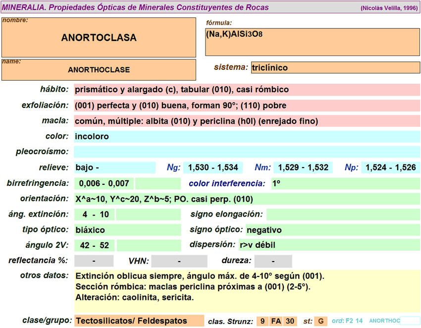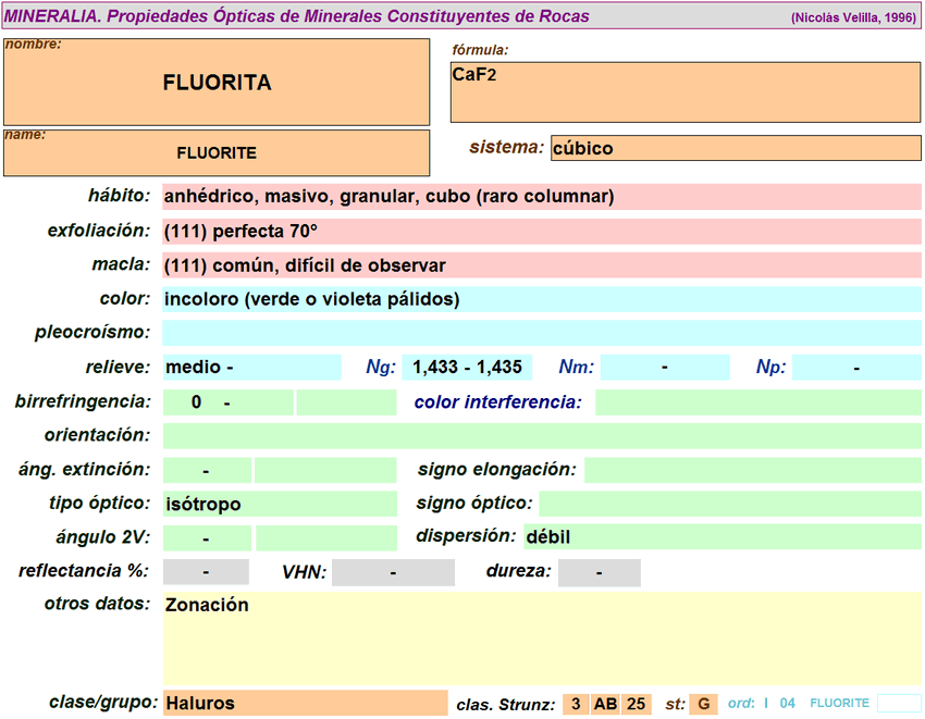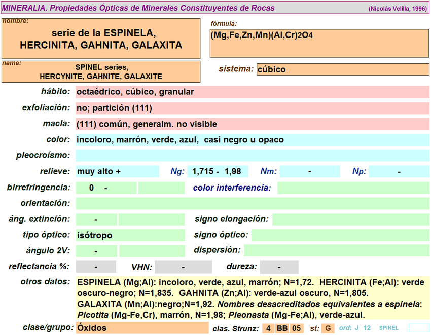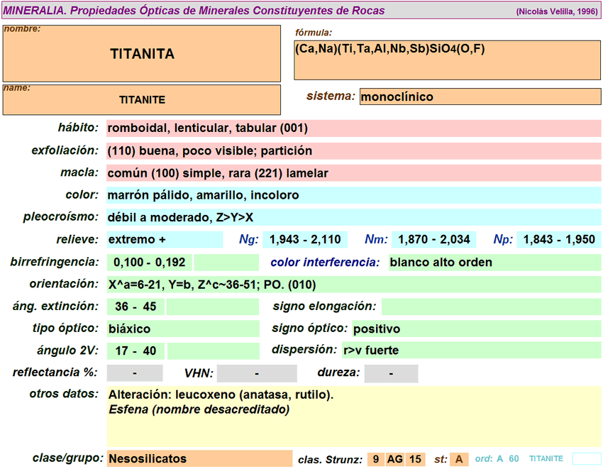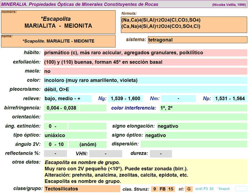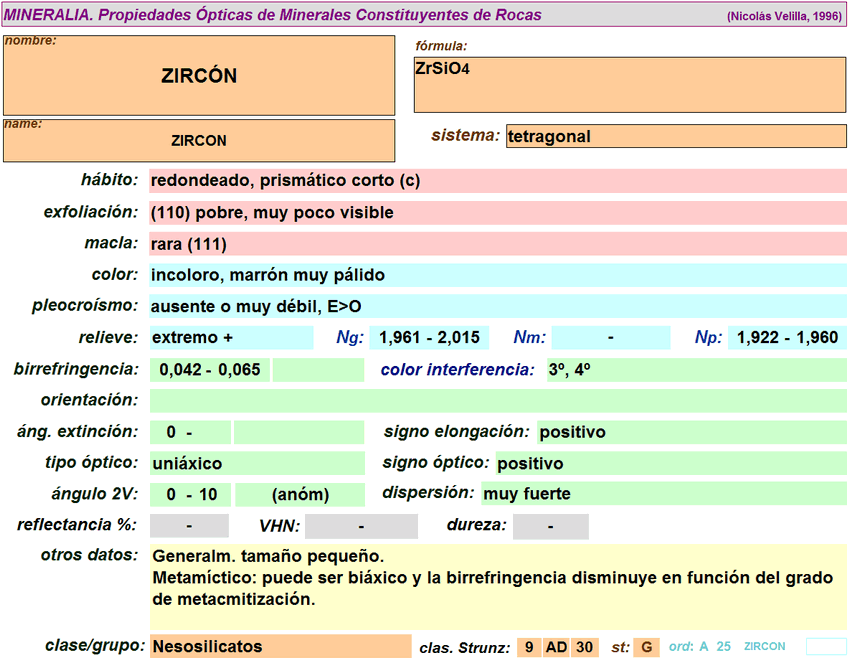 VELILLA, N. (1995). Mineralia: Una base de datos de las propiedades ópticas de los minerales que forman rocas. Bol. Soc. Española Mineralogía 18:201-205.