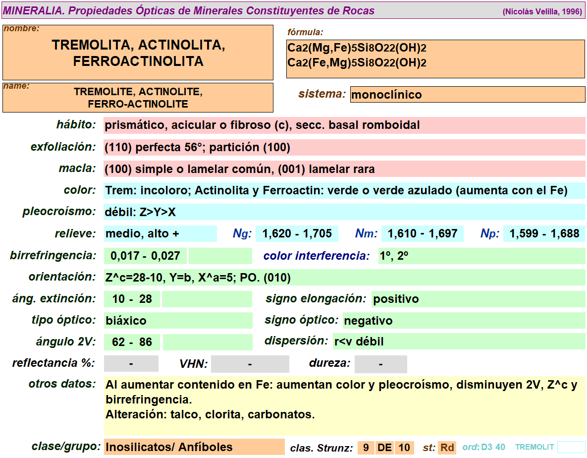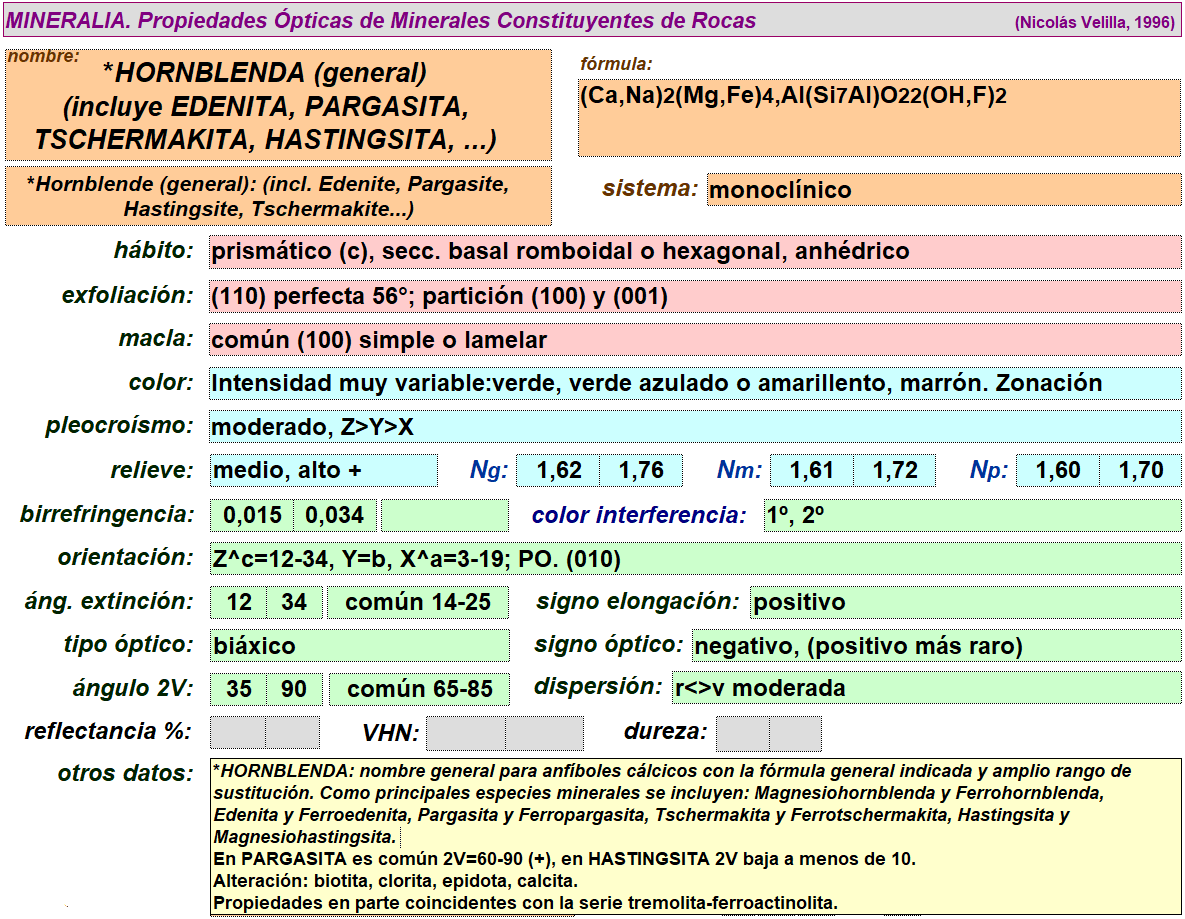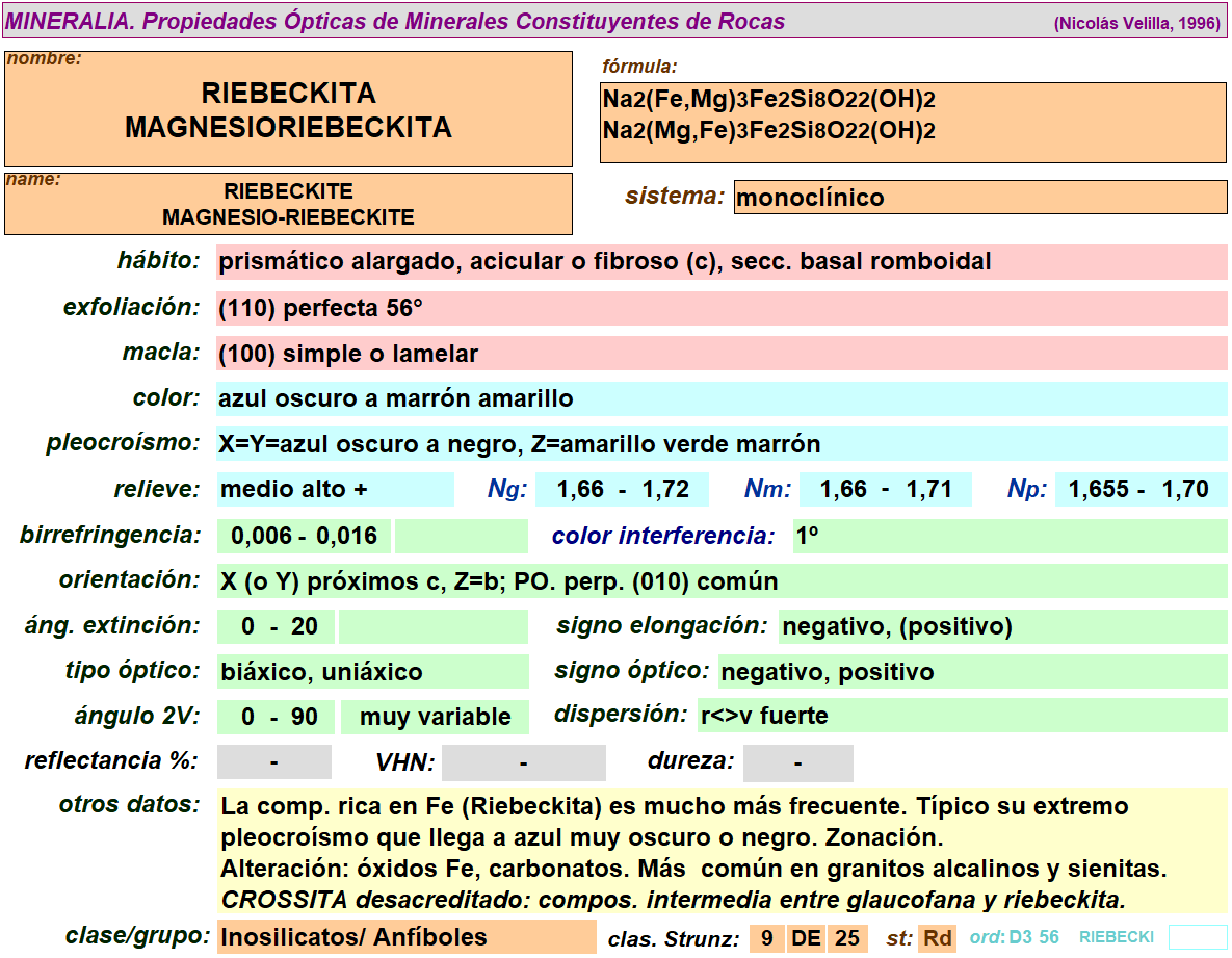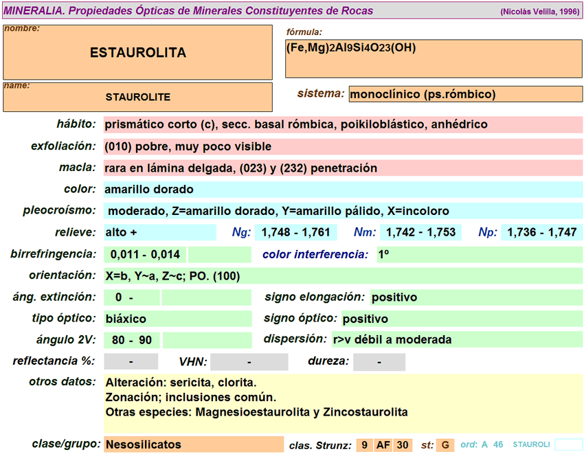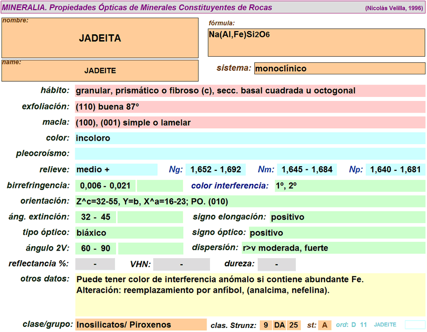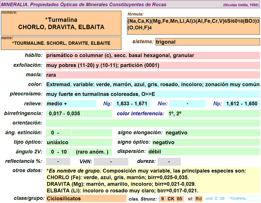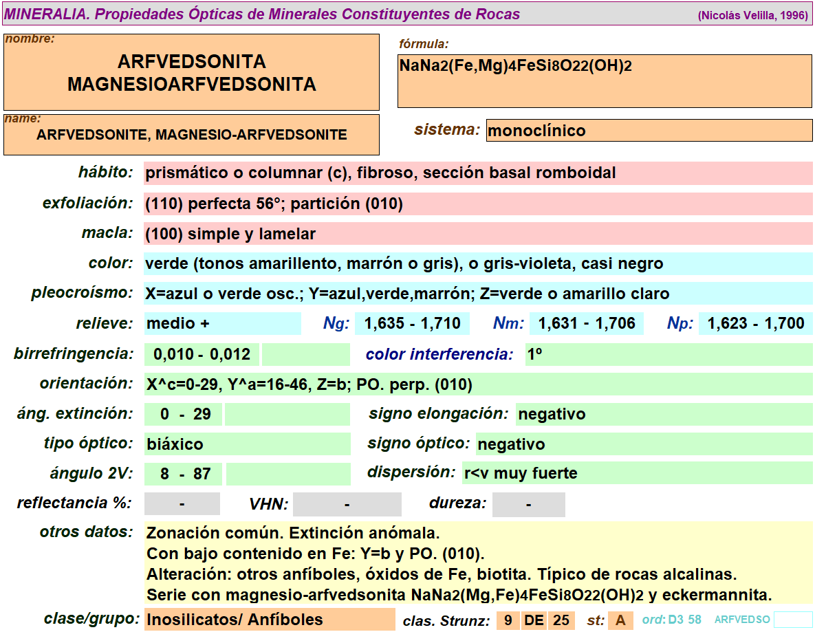 VELILLA, N. (1995). Mineralia: Una base de datos de las propiedades ópticas de los minerales que forman rocas. Bol. Soc. Española Mineralogía 18:201-205.