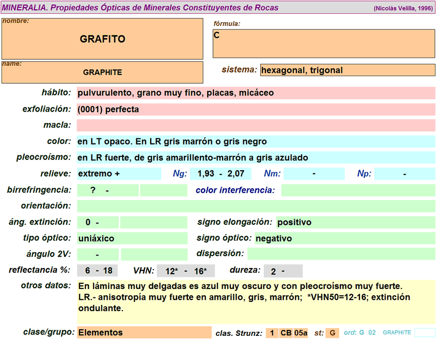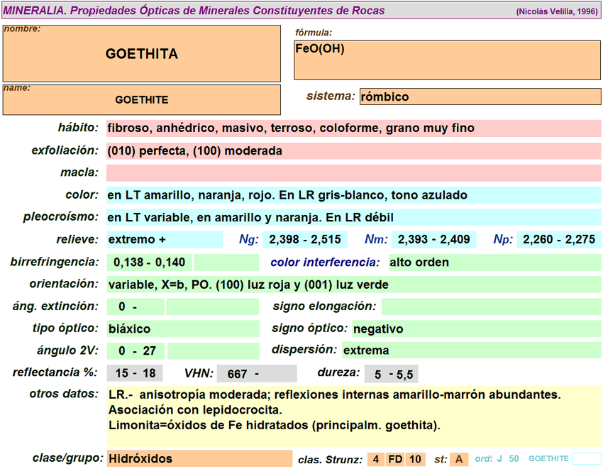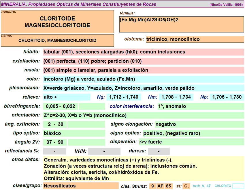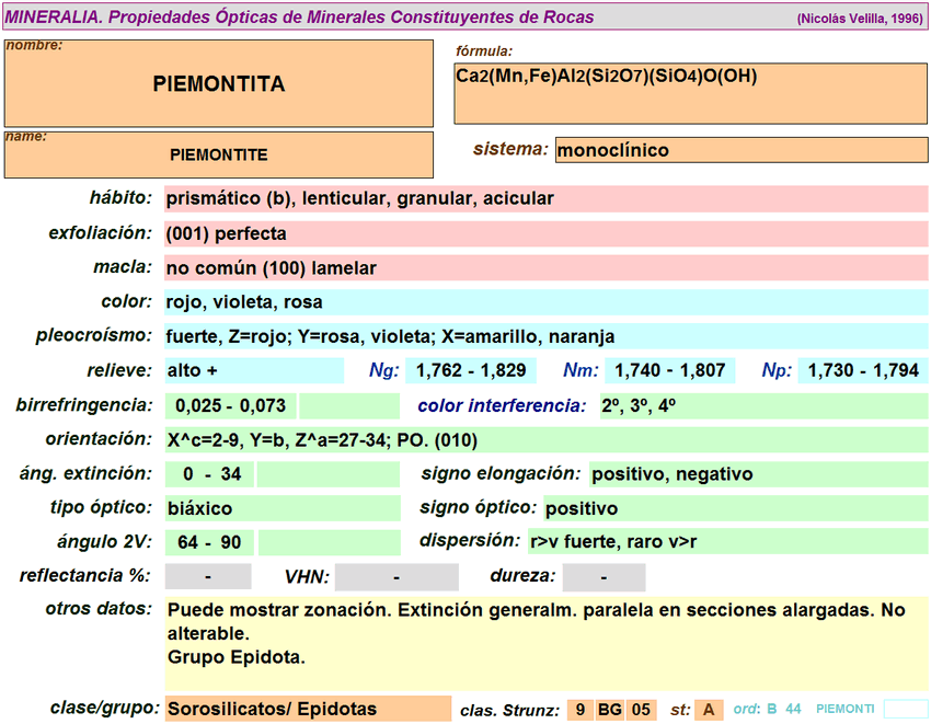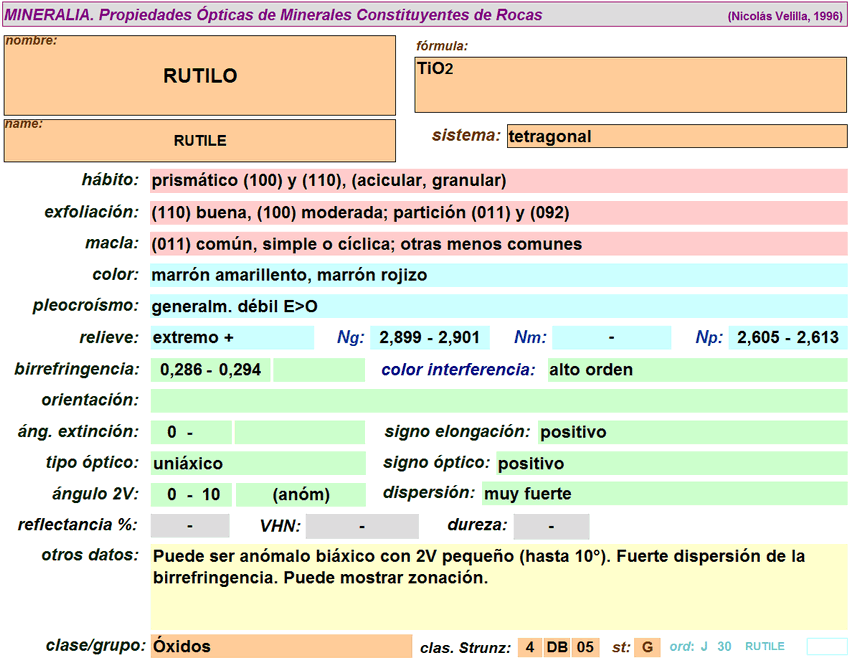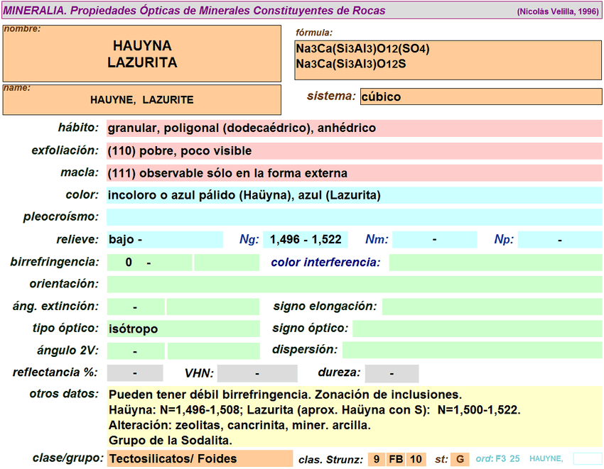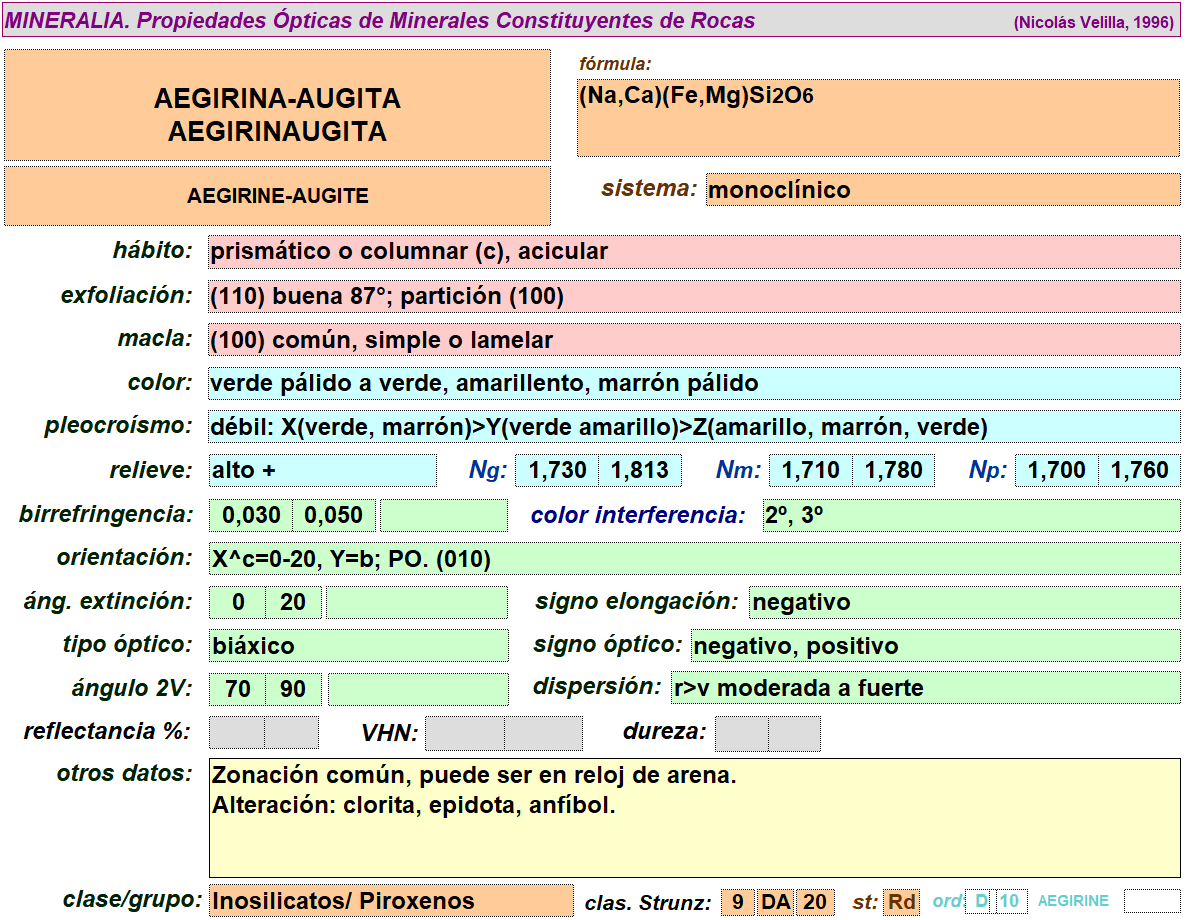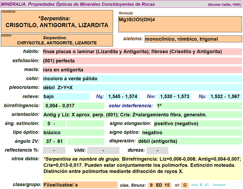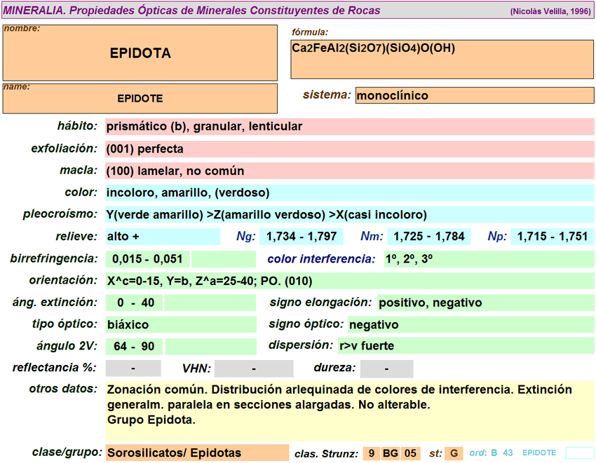 VELILLA, N. (1995). Mineralia: Una base de datos de las propiedades ópticas de los minerales que forman rocas. Bol. Soc. Española Mineralogía 18:201-205.