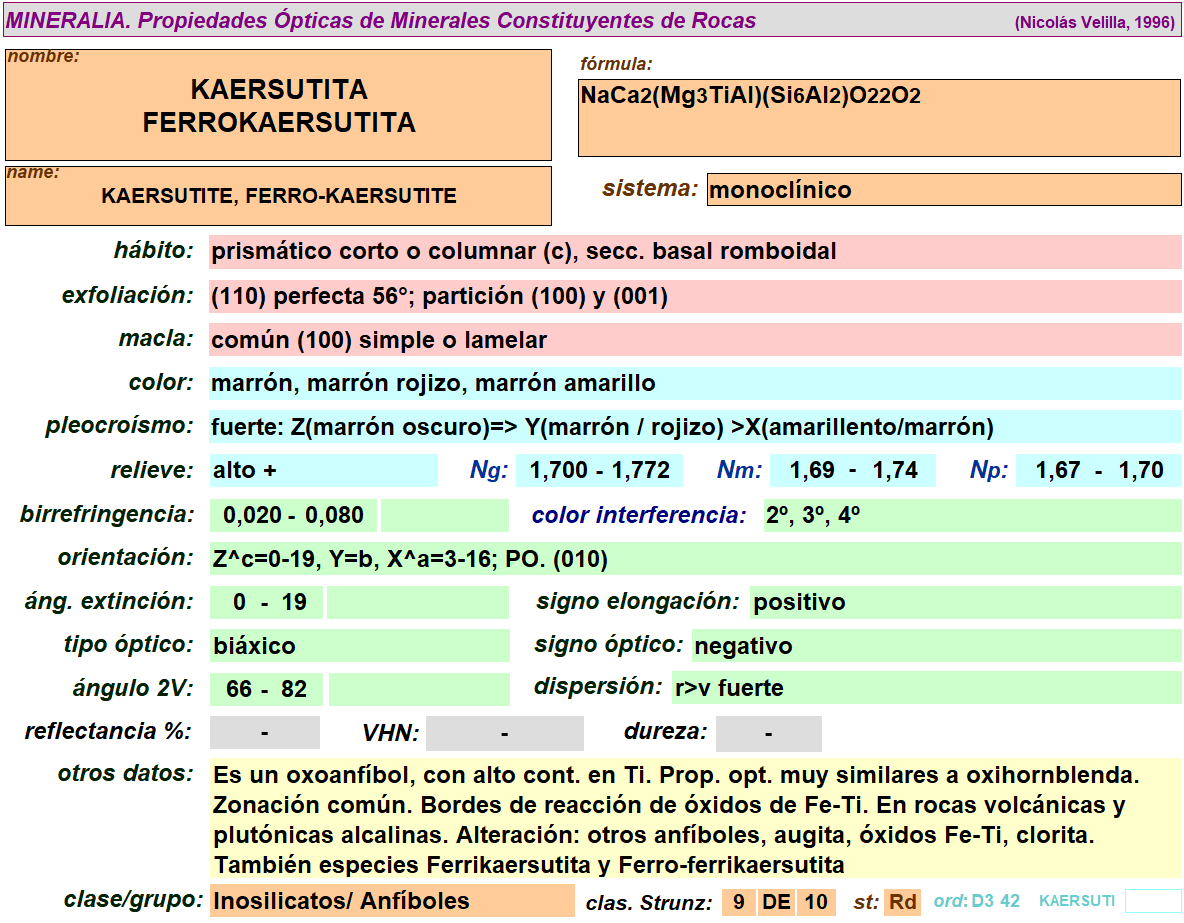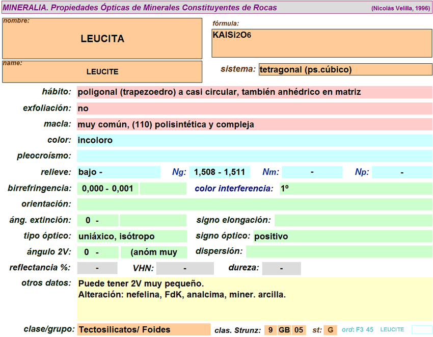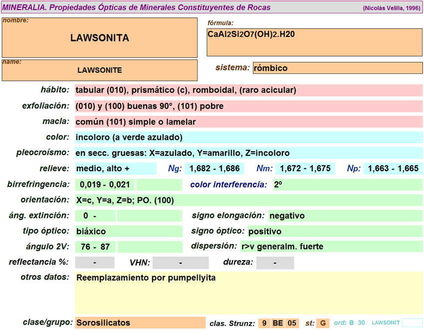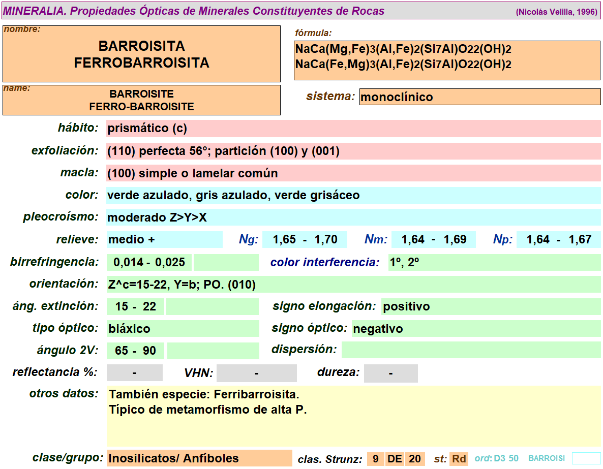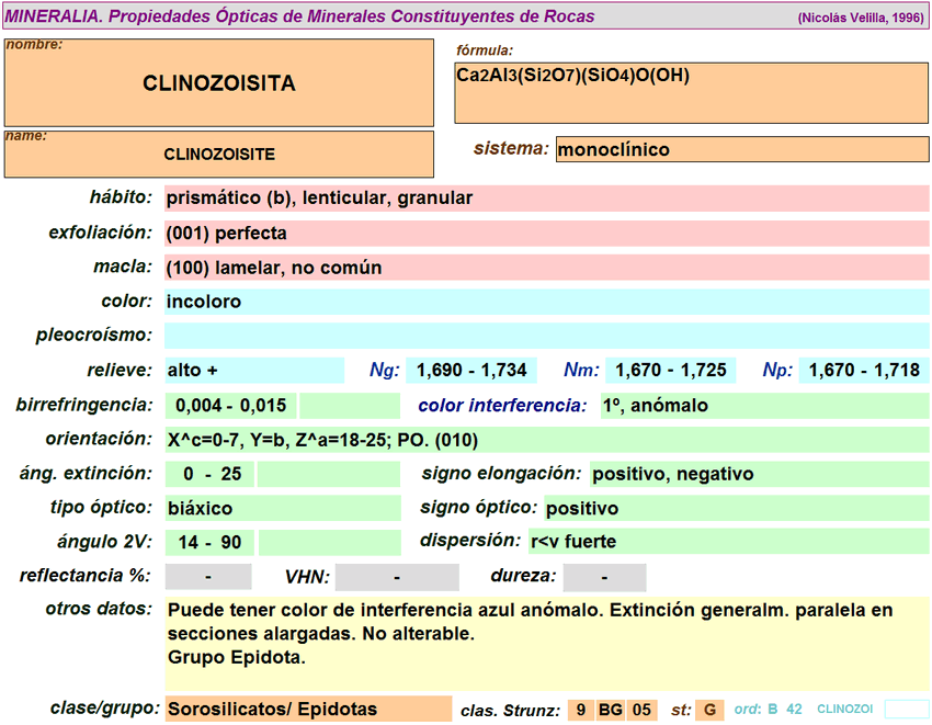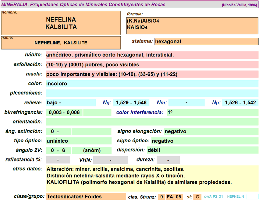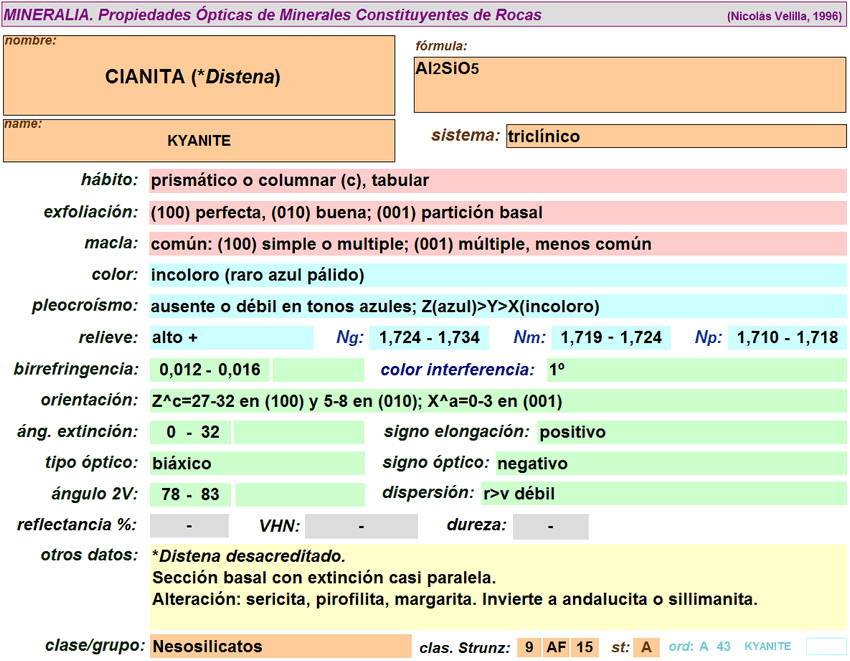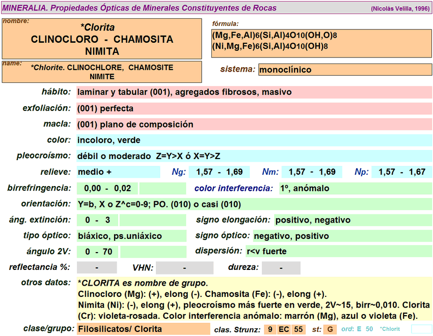 VELILLA, N. (1995). Mineralia: Una base de datos de las propiedades ópticas de los minerales que forman rocas. Bol. Soc. Española Mineralogía 18:201-205.