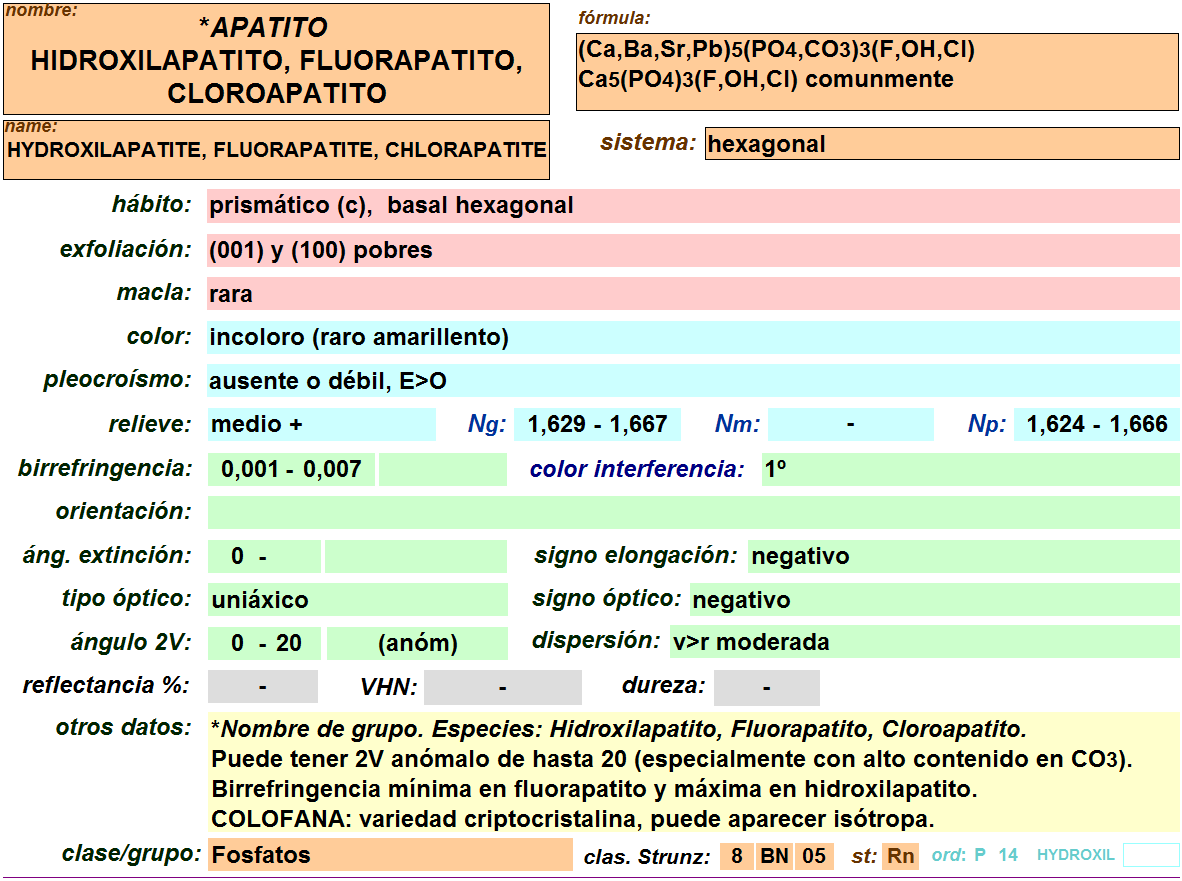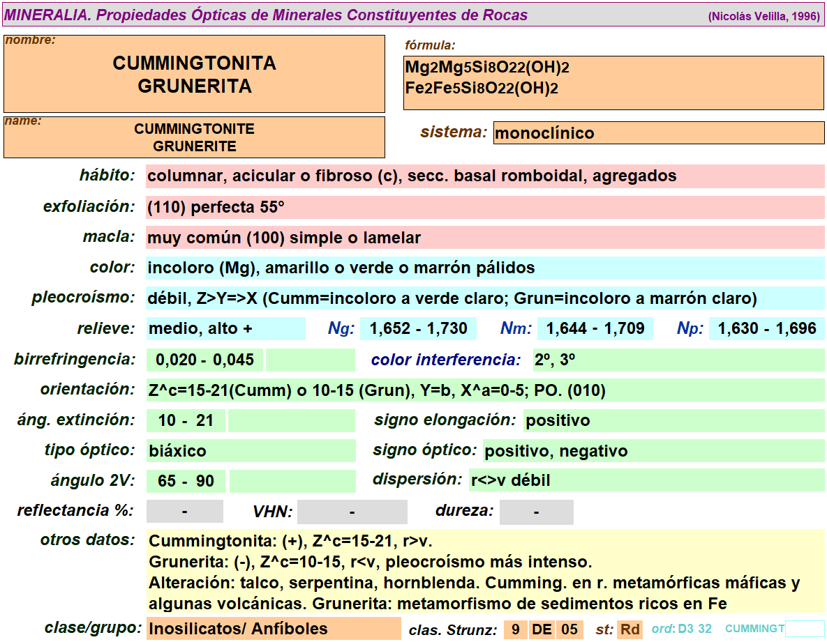 Las fichas de propiedades ópticas proceden de la base de datos Mineralia (Velilla, 1995) que se elaboró, entre otros, con datos de las referencias que se citan a continuación: